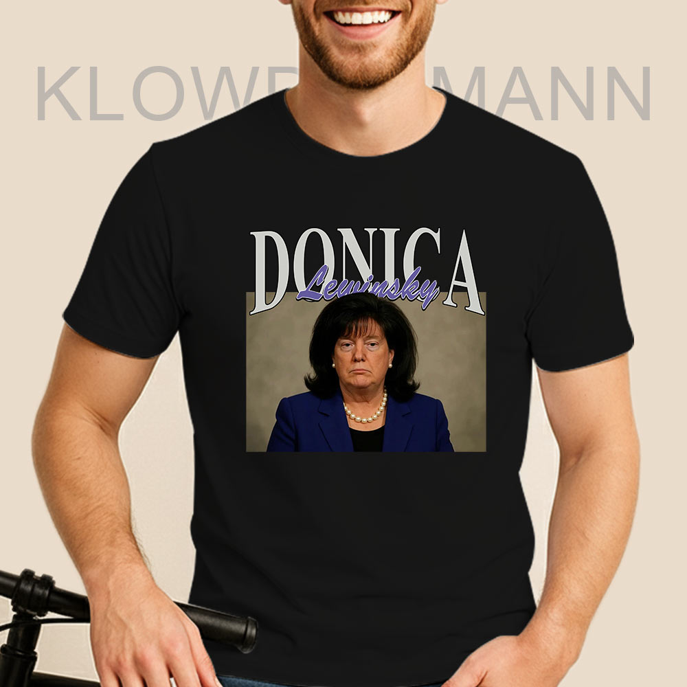 The Donica Lewinsky Shirt is a tongue-in-cheek piece made for anyone who appreciates political humor, cultural mashups, and bold, conversation-starting graphics.