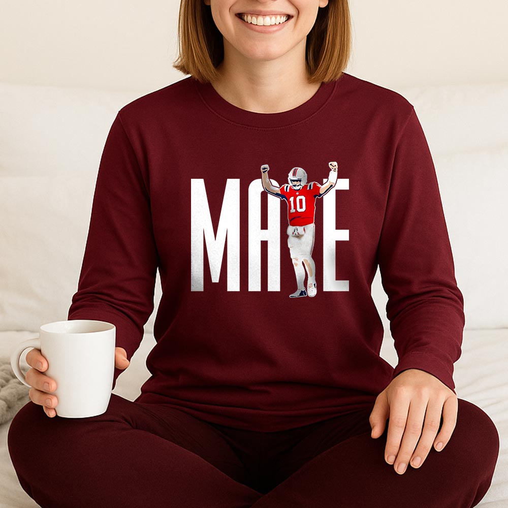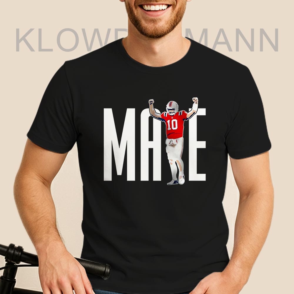 This Drake Maye 10 Shirt puts Drake Maye—New England’s rising star quarterback—front and center, capturing the electric confidence he brings to every snap. The bold “MAYE” lettering behind him gives the design the feel of a celebratory banner, the kind fans would wave after he fires off another perfect pass. It’s a wearable tribute to the Patriots’ new era, wrapped in a simple, striking graphic that proudly shows support for Maye’s journey from standout college talent to NFL playmaker. Whether you’re in the stands, at a watch party, or just repping your team around town, this Drake Maye 10 Shirtt lets you celebrate the quarterback everyone in New England is talking about.