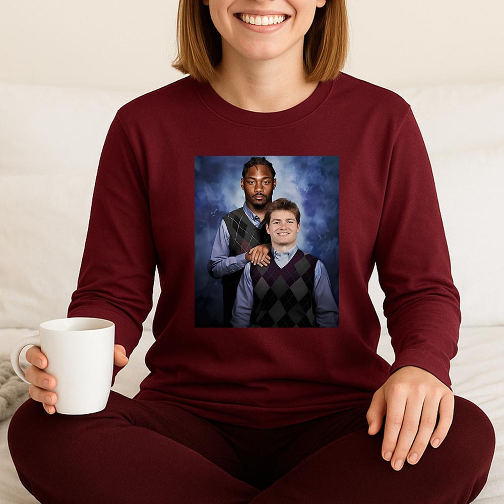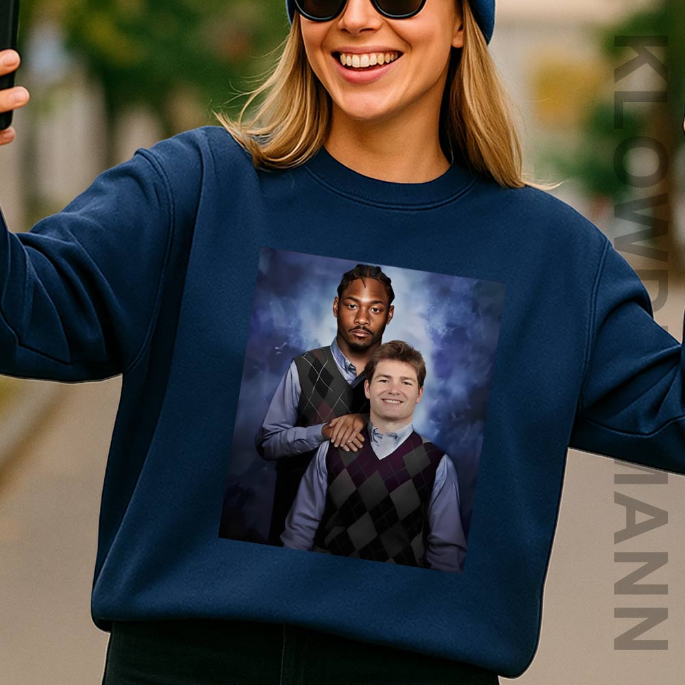 Together, they form a playful, tongue-in-cheek duo: one a seasoned star, the other the fresh face of the team. Captured in a mock portrait that’s equal parts ridiculous and endearing, the Drake Maye Stefon Diggs Step Brothers Shirt becomes a fun tribute to football fandom, inside jokes, and the unexpected chemistry of two players now sharing a uniform—and a storyline.