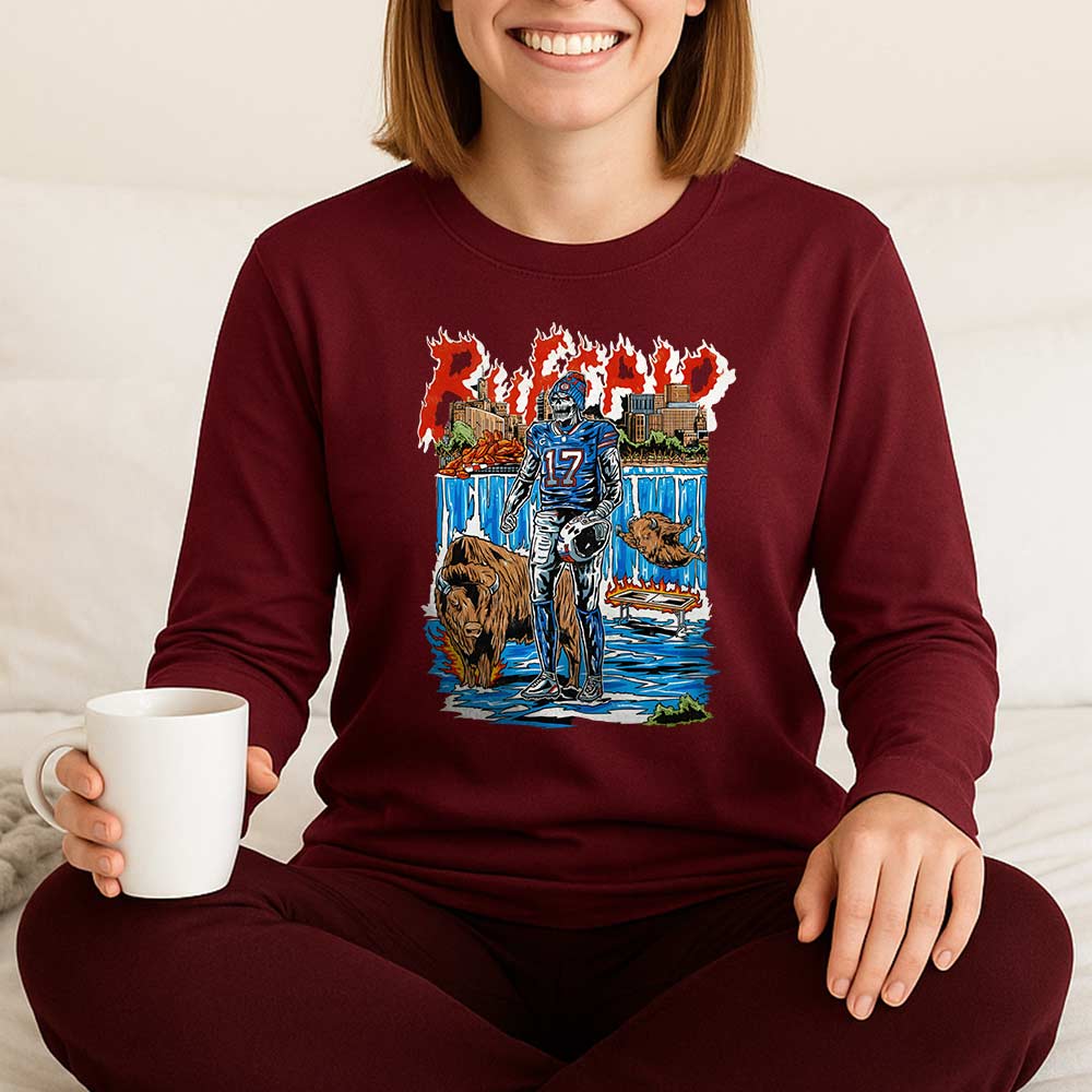 The intense artwork and vivid colors elevate this hoodie beyond ordinary fan gear. It tells a story of toughness, loyalty, and a city that never stops believing. Made for fans who wear Buffalo pride like armor, this Josh Allen Buffalo Bills Skeleton Hoodie stands strong no matter the season.