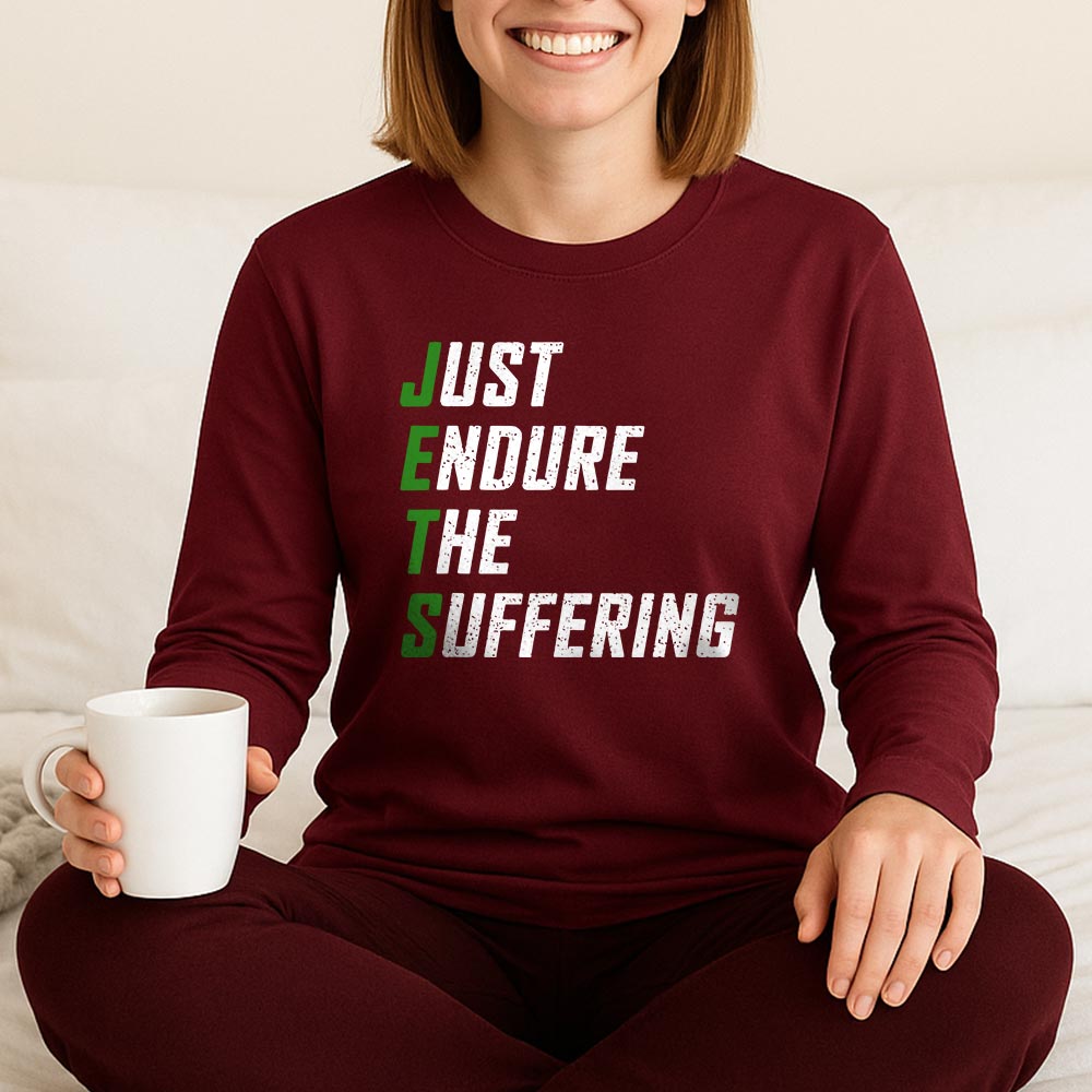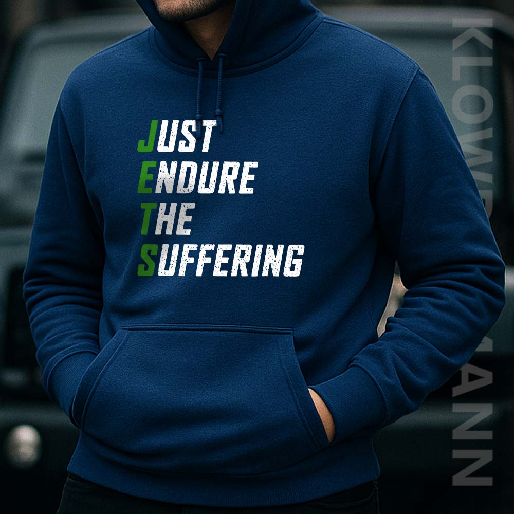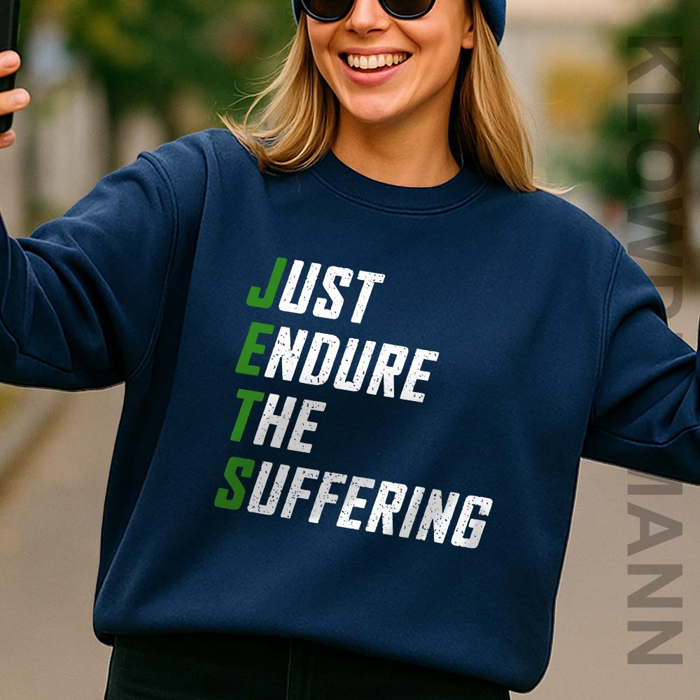 The design turns years of heartbreak into dark humor, perfectly capturing the loyalty it takes to keep showing up season after season. It’s not just a slogan—it’s a shared mindset, making this Just Endure The Suffering shirt a true badge of resilience for anyone who stands by the Jets no matter how tough it gets.