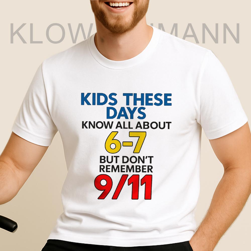 Wearing this Kids These Days Know All About 6-7 Shirt feels like stepping into a strange crossroads between generations. The bold lettering—“Kids These Days Know All About 6-7 but Don’t Remember 9/11”—sets the tone immediately. It’s part humor, part commentary, and part gentle reminder of how fast culture changes.