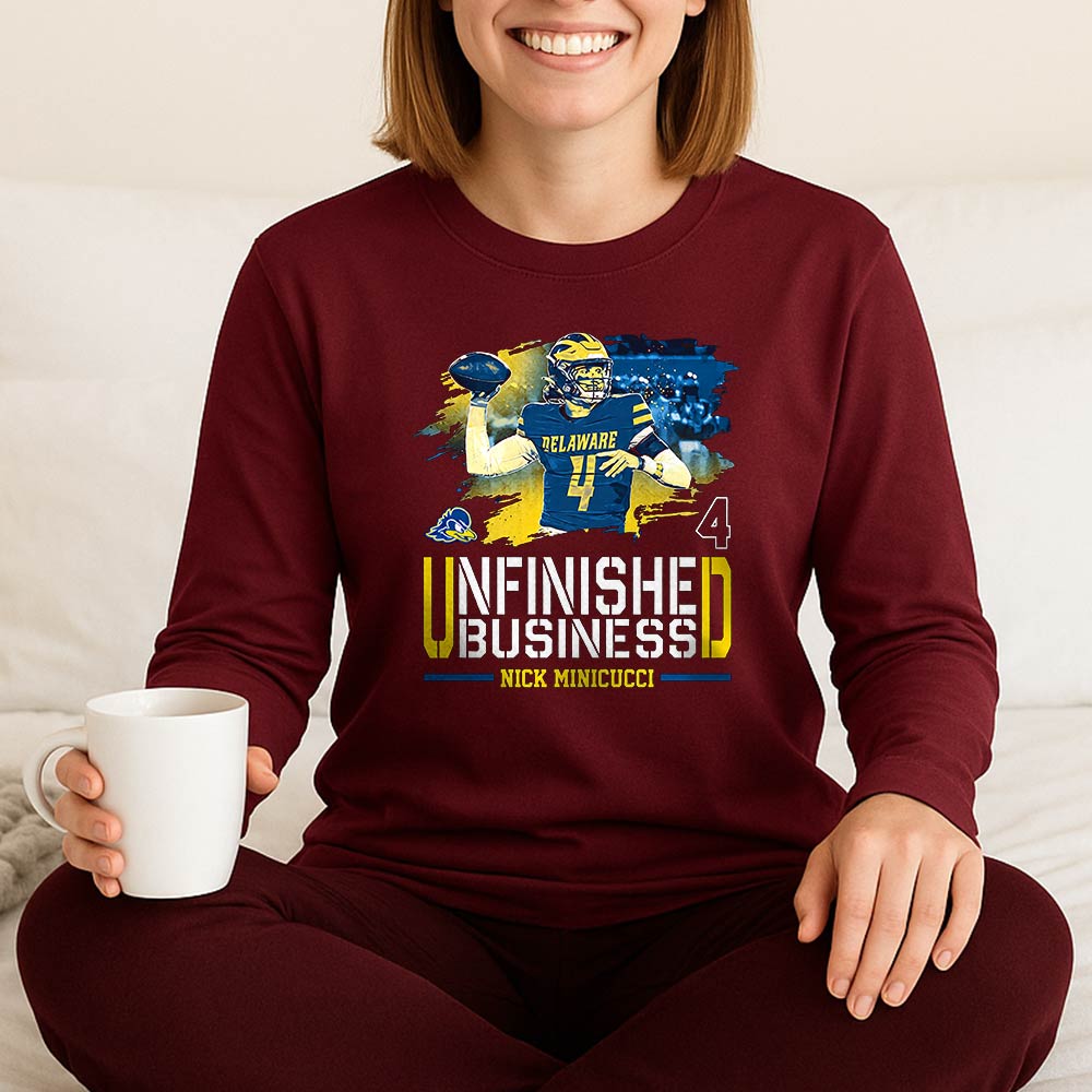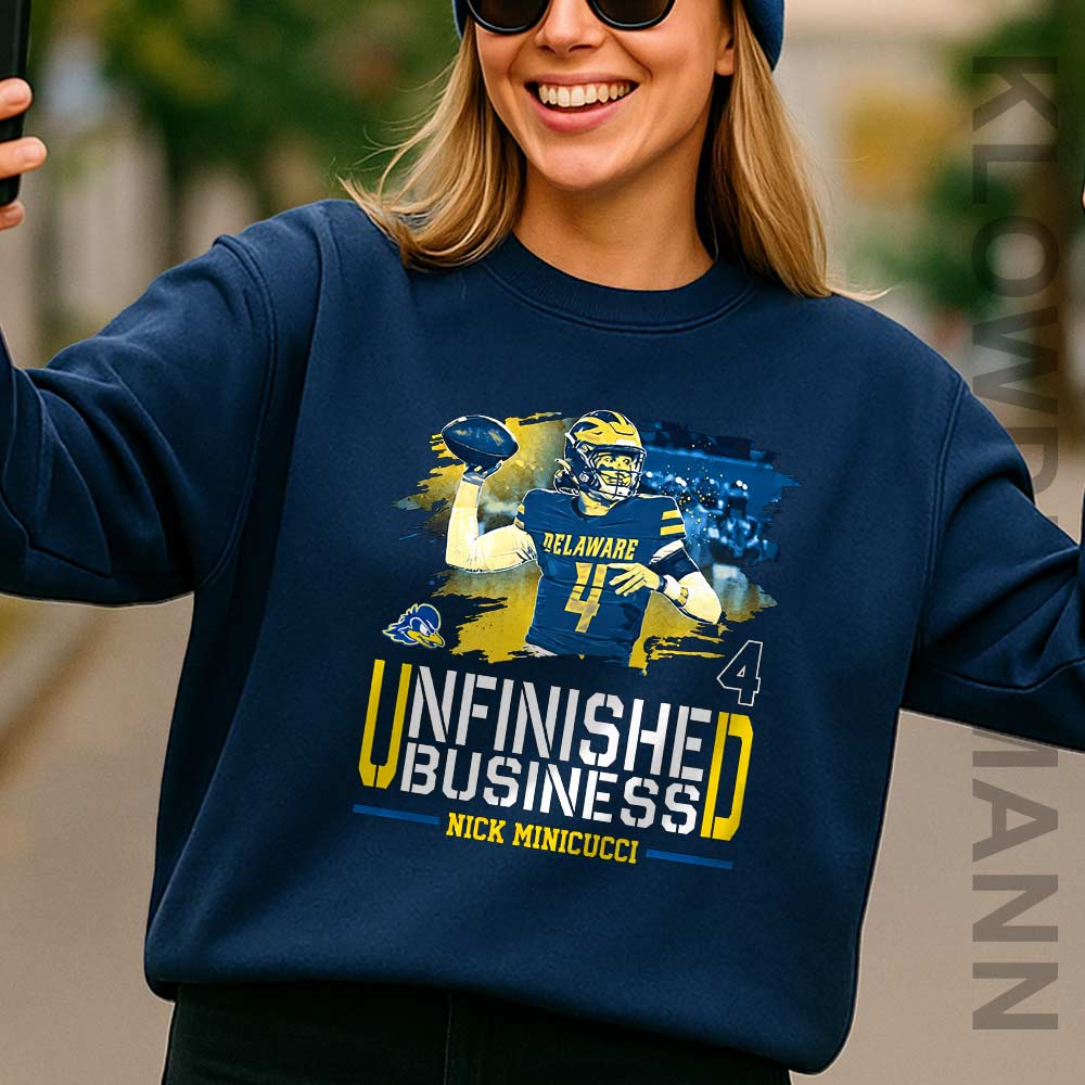 More than just a player shirt, the Nicholas Minicucci Unfinished Business Shirt tells a story of grit, growth, and confidence—making it a powerful way for fans to show belief in Minicucci’s journey and the future of Delaware football.