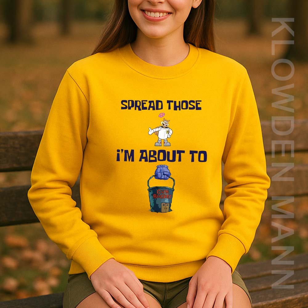 This Spread Those I’m About To Cum Bucket Shirt leans into outrageous SpongeBob-inspired humor, reimagining Sandy Cheeks in a wild, irreverent meme moment. The design sets up a perfectly unhinged “setup and punchline” gag: the bold phrase “Spread Those, I’m About To—” leading straight into the over-the-top “Cum Bucket” joke, flipping a familiar cartoon reference into full chaotic internet comedy.