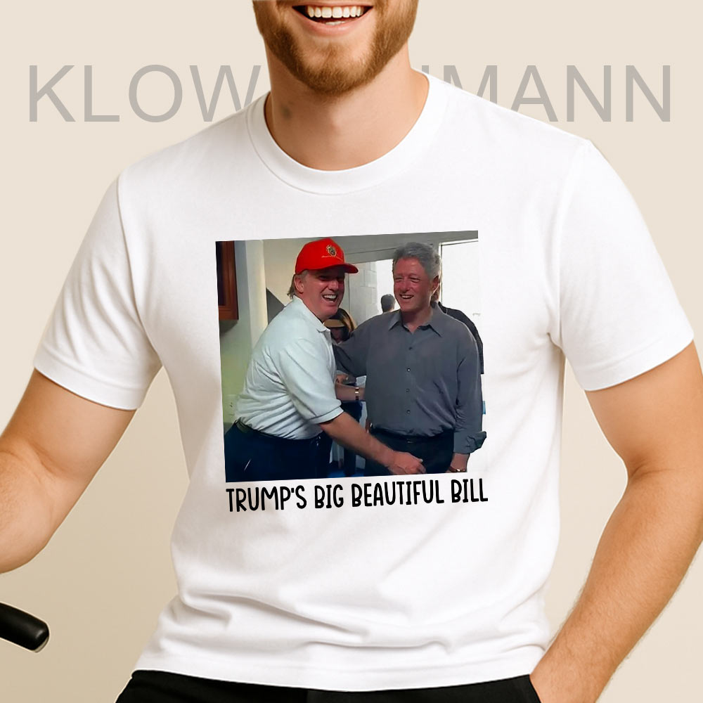 Leaning fully into political parody, the Trump’s Big Beautiful Bill Shirt transforms a digitally altered, tongue-in-cheek image of Donald Trump and Bill Clinton into a moment of pure comic exaggeration. The scene shows Trump grinning widely while placing his hand in an intentionally awkward spot — a visual gag designed to poke fun at the long-running internet jokes about the high-profile social circles both men once moved in, including the much-discussed chatter surrounding Epstein. It’s satire meant for people who get the references without taking them literally.